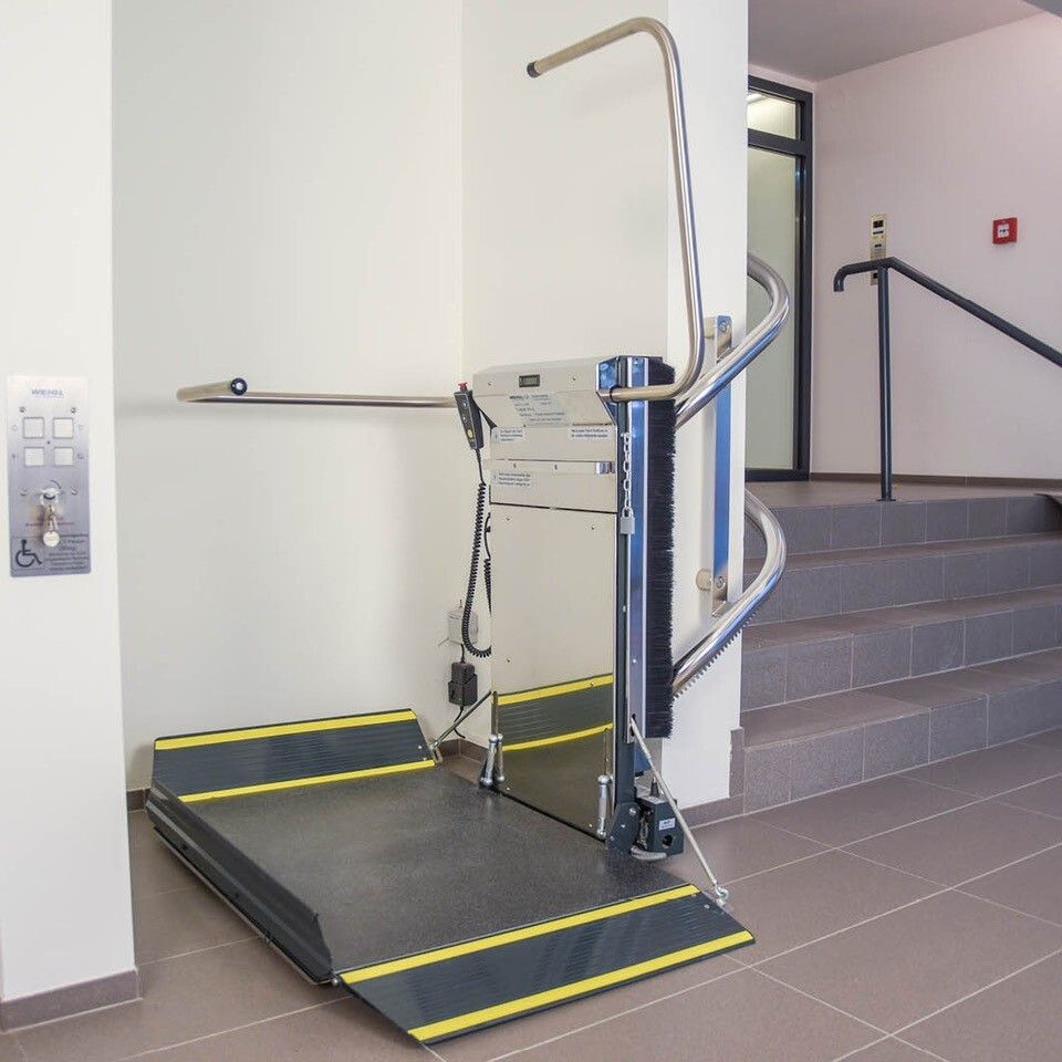 Besonders vorteilhaft an unseren Plattformliften ist, dass sie Rollstuhlfahrern ermöglichen, selbständig Treppenstufen zu überwinden, indem diese mit dem Rollstuhl auf die Plattform fahren.