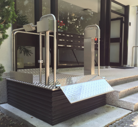 Unsere Rollstuhl-Hebebühnen eignen sich, um Zugänge in öffentliche Gebäude, Restaurants oder Wohnungen barrierefrei zu gestalten. Insbesondere für kleinere bis mittlere Höhenunterschiede von 0.5 bis 3 Meter eignet sich der Einsatz einer Hebebühne.
